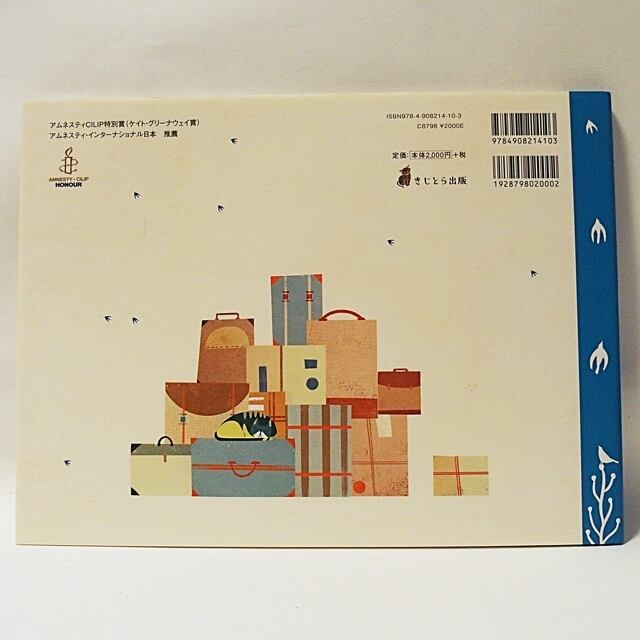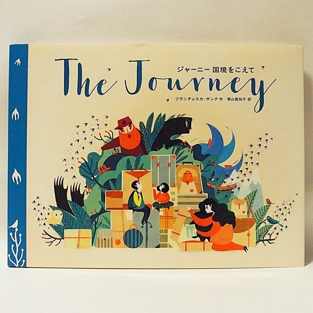 美しい色彩、現代的なタッチ、構図の取りかたやデフォルメのしかたに若さのにじみ出る、躍動感の溢れる絵が魅力です。どんな楽しいお話の絵本なんだろう?と想像させる力があります。けれど、この絵本に描かれるテーマは、難民。